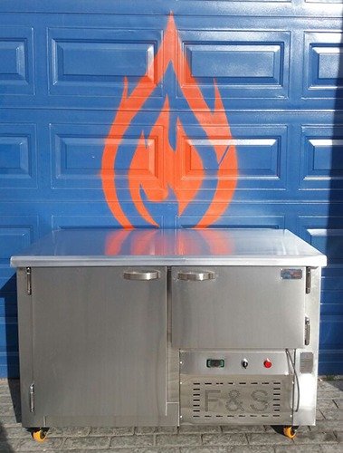 ESTRUCTURA: Elaborada en acero satinado inoxidable 430 calibre 22 y calibre 20, puertas batientes con empaque e imán, manijas en acero, rodachinas de 3” para trabajo pesado, separador térmico, parrilla troquelada graduable, tapa con salpicadero (opc), sistema de recolección de agua en su difusor.