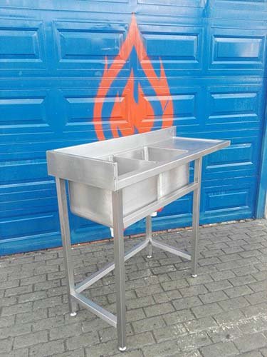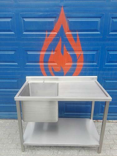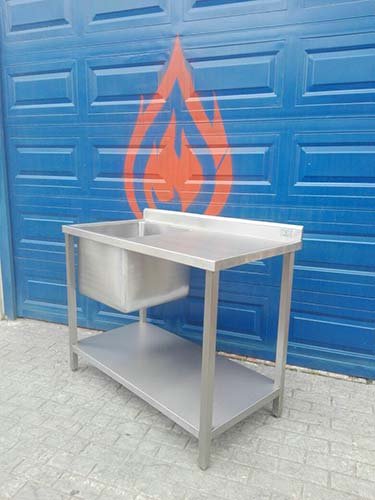 ESTRUCTURA: Elaborada en tubo de acero inoxidable 304 calibre 18, refuerzos en acero del mismo calibre, niveladores en acero o aluminio, según requerimiento, borde tipo media caña, salpicadero de 20 cm, entrepaño en su parte inferior calibre 20 referencia 304
